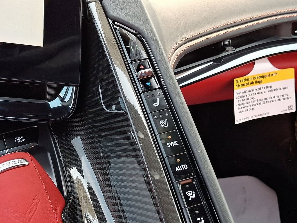 14 Speakers, 2 Cargo Nets, 4-Wheel Antilock 4-Wheel Disc Carbon Ceramic Brakes, 4-Wheel Disc Brakes, 8-Way Power Driver Seat Adjuster, 8-Way Power Passenger Seat Adjuster, ABS brakes, Adaptive suspension, Air Conditioning, Alloy wheels, AM/FM radio: SiriusXM, Auto High-beam Headlights, Auto-dimming door mirrors, Auto-dimming Rear-View mirror, Automatic temperature control, Bose Performance Series Sound System w/14 Speakers, Brake assist, Bumpers: body-color, Carbon Fiber Level 2 Interior Trim, Carbon Flash Metallic Painted Outside Mirrors, Carbon Flash Metallic-Painted Outside Mirrors, Compass, Custom Leather Wrapped Interior Package, Dark Gray Metallic-Painted Calipers, Delay-off headlights, Driver door bin, Driver Power Bolster Seat Adjuster, Driver vanity mirror, Dual front impact airbags, Dual front side impact airbags, Electrical Theft Deterrent System, Electronic Stability Control, Emergency communication system: OnStar and Chevrolet connected services capable, Engine Lighting, Exterior Parking Camera Rear, Four wheel independent suspension, Front anti-roll bar, Front Bucket Seats, Front Center Armrest, Front dual zone A/C, Front reading lights, Fully automatic headlights, Garage door transmitter, GT2 Bucket Seats, HD Front & Rear Vision Cameras, Heads-Up Display, Heated & Vented Driver & Passenger Seats, Heated door mirrors, Heated front seats, Heated Steering Wheel, Heated steering wheel, Illuminated entry, Leather Shift Knob, Leather steering wheel, Low tire pressure warning, Memory Driver & Passenger Convenience Package, Memory seat, Napa Lthr Seating Surfaces w/Perforated Inserts, Navigation System, Occupant sensing airbag, Outside temperature display, Overhead console, Panic alarm, Passenger door bin, Passenger Power Bolster Seat Adjuster, Passenger vanity mirror, Performance Data & Video Recorder, Power door mirrors, Power Driver Lumbar Control Seat Adjuster, Power driver seat, Power Passenger Lumbar Control Seat Adjuster, Power passenger seat, Power steering, Power windows, Power-Adjustable Outside Heated Mirrors, Preferred Equipment Group 3LZ, Premium audio system: Chevrolet Infotainment 3 Premium, Radio data system, Radio: Chevrolet Infotainment 3 Premium System, Rear anti-roll bar, Rear Cross Traffic Alert, Rear window defroster, Red Engine Intake, Remote keyless entry, Security system, Side Blind Zone Alert, Speed control, Speed-sensing steering, Spoiler, Sport steering wheel, Stealth Interior Trim Package, Steering wheel memory, Steering wheel mounted audio controls, Sueded Microfiber-Wrapped Upper Interior Trim Pkg, Tachometer, Telescoping steering wheel, Tilt steering wheel, Traction control, Trip computer, Turn signal indicator mirrors, Universal Home Remote, Variably intermittent wipers, Vehicle Inclination Theft Deterrent Sensor, Vehicle Interior Movement Theft Deterrent Sensor, Velocity Yellow-Painted Calipers, Ventilated front seats, Voltmeter, Wheels: 20 x 10 Fr/21 x 13 Rr Titanium Satin, Wireless Charging for Devices.