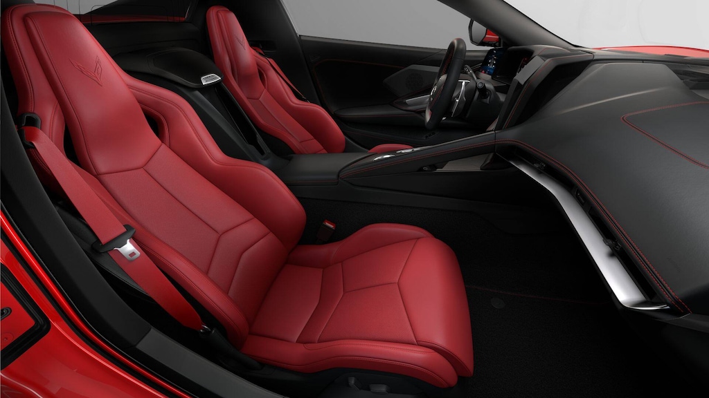 10 Speakers, 4-Wheel Disc Brakes, 8-Way Power Driver Seat Adjuster, 8-Way Power Passenger Seat Adjuster, ABS brakes, Air Conditioning, Alloy wheels, AM/FM radio: SiriusXM, Auto High-beam Headlights, Auto-dimming Rear-View mirror, Automatic temperature control, Brake assist, Bumpers: body-color, Compass, Convertible HardTop, Convertible roof lining, Delay-off headlights, Driver door bin, Driver vanity mirror, Dual front impact airbags, Dual front side impact airbags, Electronic Stability Control, Emergency communication system: OnStar and Chevrolet connected services capable, Four wheel independent suspension, Front anti-roll bar, Front Bucket Seats, Front Center Armrest, Front dual zone A/C, Front reading lights, Fully automatic headlights, Glass rear window, GT1 Bucket Seats, Heated door mirrors, Illuminated entry, Integrated roll-over protection, Lane Departure Warning System, Leather Shift Knob, Leather steering wheel, Low tire pressure warning, Mulan Leather Seating Surfaces with Perforated Inserts, Navigation System, Occupant sensing airbag, Outside temperature display, Overhead console, Panic alarm, Passenger door bin, Passenger vanity mirror, Power convertible roof, Power door mirrors, Power driver seat, Power passenger seat, Power steering, Power windows, Premium audio system: Chevrolet Infotainment 3 Premium, Radio data system, Radio: Infotainment System with Google Built-in, Rear anti-roll bar, Rear window defroster, Remote keyless entry, Speed control, Speed-sensing steering, Sport steering wheel, Steering wheel mounted audio controls, Tachometer, Telescoping steering wheel, Tilt steering wheel, Traction control, Trip computer, Turn signal indicator mirrors, Variably intermittent wipers, Voltmeter, Wheels: 19 x 8.5 Front and 20 x 11 Rear 5-Split-Spoke.