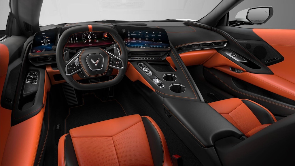 14 Speakers, 2 Cargo Nets, 4-Wheel Disc Brakes, 8-Way Power Driver Seat Adjuster, 8-Way Power Passenger Seat Adjuster, ABS brakes, Air Conditioning, Alloy wheels, AM/FM radio: SiriusXM, Auto High-beam Headlights, Auto-dimming door mirrors, Auto-dimming Rear-View mirror, Automatic temperature control, Bose Performance Series Sound System with 14 Speakers, Brake assist, Bumpers: body-color, Compass, Custom Leather Wrapped Interior Package, Delay-off headlights, Driver door bin, Driver Power Bolster Seat Adjuster, Driver vanity mirror, Dual front impact airbags, Dual front side impact airbags, Electrical Theft Deterrent System, Electronic Stability Control, Emergency communication system: OnStar and Chevrolet connected services capable, Exterior Parking Camera Rear, Four wheel independent suspension, Front anti-roll bar, Front Bucket Seats, Front Center Armrest, Front dual zone A/C, Front reading lights, Fully automatic headlights, Garage door transmitter, GT2 Bucket Seats, HD Front and Rear Vision Cameras, Head-Up Display, Heads-Up Display, Heated and Vented Driver and Passenger Seats, Heated door mirrors, Heated front seats, Heated Steering Wheel, Heated steering wheel, Illuminated entry, Leather Shift Knob, Leather steering wheel, Low tire pressure warning, Memory Driver and Passenger Convenience Package, Memory seat, Napa Leather Seating Surfaces with Perforated Inserts, Navigation System, Occupant sensing airbag, Outside temperature display, Overhead console, Panic alarm, Passenger door bin, Passenger Power Bolster Seat Adjuster, Passenger vanity mirror, Performance Data and Video Recorder, Power door mirrors, Power Driver Lumbar Control Seat Adjuster, Power driver seat, Power Passenger Lumbar Control Seat Adjuster, Power passenger seat, Power steering, Power windows, Power-Adjustable Outside Heated Mirrors, Premium audio system: Chevrolet Infotainment 3 Premium, Radio data system, Radio: Infotainment System with Google Built-in, Rear anti-roll bar, Rear Cross Traffic Alert, Rear window defroster, Remote keyless entry, Security system, Side Blind Zone Alert, Speed control, Speed-sensing steering, Sport steering wheel, Steering wheel memory, Steering wheel mounted audio controls, Sueded Microfiber-Wrapped Upper Interior Trim Package, Tachometer, Telescoping steering wheel, Tilt steering wheel, Traction control, Trip computer, Turn signal indicator mirrors, Universal Home Remote, Variably intermittent wipers, Vehicle Inclination Theft Deterrent Sensor, Vehicle Interior Movement Theft Deterrent Sensor, Ventilated front seats, Voltmeter, Wheels: 19 x 8.5 Front and 20 x 11 Rear 5-Split-Spoke, Wireless Phone Charging.