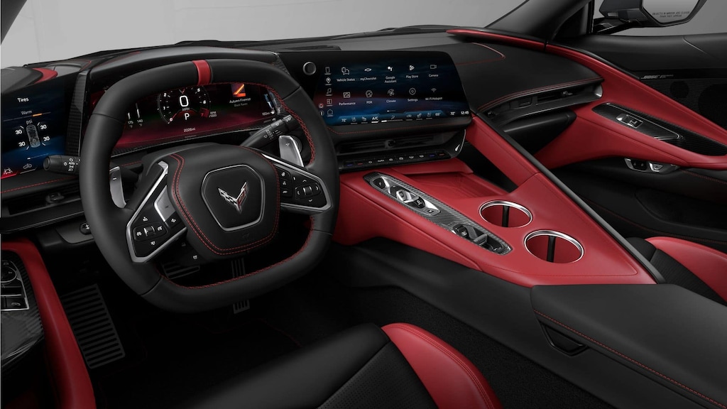 2026 Chevrolet Corvette Stingray 2LT Black RWD 8-Speed Dual Clutch 6.2L V814 Speakers, 2 Cargo Nets, 4-Wheel Disc Brakes, 8-Way Power Driver Seat Adjuster, 8-Way Power Passenger Seat Adjuster, ABS brakes, Air Conditioning, Alloy wheels, AM/FM radio: SiriusXM, Auto High-beam Headlights, Auto-dimming door mirrors, Auto-dimming Rear-View mirror, Automatic temperature control, Bose Performance Series Sound System with 14 Speakers, Brake assist, Bumpers: body-color, Compass, Delay-off headlights, Driver door bin, Driver Power Bolster Seat Adjuster, Driver vanity mirror, Dual front impact airbags, Dual front side impact airbags, Electrical Theft Deterrent System, Electronic Stability Control, Emergency communication system: OnStar and Chevrolet connected services capable, Exterior Parking Camera Rear, Four wheel independent suspension, Front anti-roll bar, Front Bucket Seats, Front Center Armrest, Front dual zone A/C, Front reading lights, Fully automatic headlights, Garage door transmitter, GT1 Bucket Seats, HD Front and Rear Vision Cameras, Head-Up Display, Heads-Up Display, Heated and Vented Driver and Passenger Seats, Heated door mirrors, Heated front seats, Heated Steering Wheel, Heated steering wheel, Illuminated entry, Leather Shift Knob, Leather steering wheel, Low tire pressure warning, Memory Driver and Passenger Convenience Package, Memory seat, Mulan Leather Seating Surfaces with Perforated Inserts, Navigation System, Occupant sensing airbag, Outside temperature display, Overhead console, Panic alarm, Passenger door bin, Passenger Power Bolster Seat Adjuster, Passenger vanity mirror, Performance Data and Video Recorder, Power door mirrors, Power Driver Lumbar Control Seat Adjuster, Power driver seat, Power Passenger Lumbar Control Seat Adjuster, Power passenger seat, Power steering, Power windows, Power-Adjustable Outside Heated Mirrors, Premium audio system: Chevrolet Infotainment 3 Premium, Radio data system, Radio: Infotainment System with Google Built-in, Rear anti-roll bar, Rear Cross Traffic Alert, Rear window defroster, Remote keyless entry, Security system, Side Blind Zone Alert, Speed control, Speed-sensing steering, Sport steering wheel, Steering wheel memory, Steering wheel mounted audio controls, Tachometer, Telescoping steering wheel, Tilt steering wheel, Traction control, Trip computer, Turn signal indicator mirrors, Universal Home Remote, Variably intermittent wipers, Vehicle Inclination Theft Deterrent Sensor, Vehicle Interior Movement Theft Deterrent Sensor, Ventilated front seats, Voltmeter, Wheels: 19 x 8.5 Front and 20 x 11 Rear 5-Split-Spoke, Wireless Phone Charging.