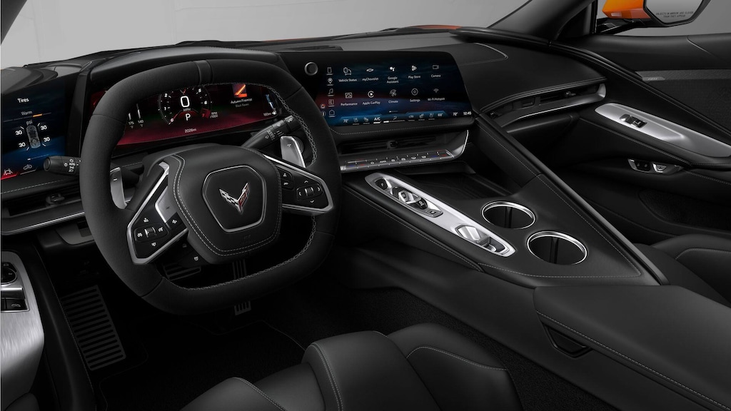 10 Speakers, 4-Wheel Disc Brakes, 8-Way Power Driver Seat Adjuster, 8-Way Power Passenger Seat Adjuster, ABS brakes, Air Conditioning, Alloy wheels, AM/FM radio: SiriusXM, Auto High-beam Headlights, Auto-dimming Rear-View mirror, Automatic temperature control, Black Exhaust Tips, Brake assist, Bumpers: body-color, Compass, Competition Sport Bucket Seats, Delay-off headlights, Driver door bin, Driver vanity mirror, Dual front impact airbags, Dual front side impact airbags, Electronic Stability Control, Emergency communication system: OnStar and Chevrolet connected services capable, Four wheel independent suspension, Front anti-roll bar, Front Bucket Seats, Front Center Armrest, Front dual zone A/C, Front License Plate Bracket, Front reading lights, Fully automatic headlights, GT1 Bucket Seats, Heated door mirrors, Illuminated entry, Leather Shift Knob, Leather steering wheel, Low tire pressure warning, Mulan Leather Seating Surfaces with Perforated Inserts, Navigation System, Occupant sensing airbag, Orange Seat Belt Color, Outside temperature display, Overhead console, Panic alarm, Passenger door bin, Passenger vanity mirror, Performance Exhaust with Stainless-Steel Tips, Power door mirrors, Power driver seat, Power passenger seat, Power steering, Power windows, Preferred Equipment Group 1LT, Premium audio system: Chevrolet Infotainment 3 Plus, Radio data system, Radio: Infotainment System with Google Built-in, Rear anti-roll bar, Rear window defroster, Remote keyless entry, Speed control, Speed-sensing steering, Sport steering wheel, Steering wheel mounted audio controls, Sueded Microfiber-Wrapped Steering Wheel, Tachometer, Telescoping steering wheel, Tilt steering wheel, Traction control, Trip computer, Turn signal indicator mirrors, Variably intermittent wipers, Voltmeter, Wheels: 19 x 8.5 Front and 20 x 11 Rear 5-Split-Spoke.