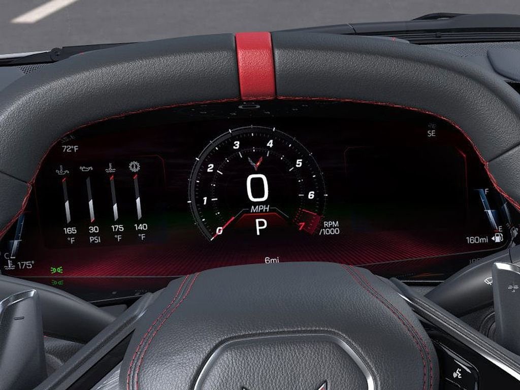 10 Speakers, 4-Wheel Disc Brakes, 8-Way Power Driver Seat Adjuster, 8-Way Power Passenger Seat Adjuster, ABS brakes, Air Conditioning, Alloy wheels, AM/FM radio: SiriusXM, Auto High-beam Headlights, Auto-dimming Rear-View mirror, Automatic temperature control, Brake assist, Bumpers: body-color, Compass, Delay-off headlights, Driver door bin, Driver vanity mirror, Dual front impact airbags, Dual front side impact airbags, Electronic Stability Control, Emergency communication system: OnStar and Chevrolet connected services capable, Four wheel independent suspension, Front anti-roll bar, Front Bucket Seats, Front Center Armrest, Front dual zone A/C, Front reading lights, Fully automatic headlights, GT1 Bucket Seats, Heated door mirrors, Illuminated entry, Leather Shift Knob, Leather steering wheel, Low tire pressure warning, Mulan Leather Seating Surfaces with Perforated Inserts, Navigation System, Occupant sensing airbag, Outside temperature display, Overhead console, Panic alarm, Passenger door bin, Passenger vanity mirror, Power door mirrors, Power driver seat, Power passenger seat, Power steering, Power windows, Premium audio system: Chevrolet Infotainment 3 Plus, Radio data system, Radio: Infotainment System with Google Built-in, Rear anti-roll bar, Rear window defroster, Remote keyless entry, Speed control, Speed-sensing steering, Sport steering wheel, Steering wheel mounted audio controls, Tachometer, Telescoping steering wheel, Tilt steering wheel, Traction control, Trip computer, Turn signal indicator mirrors, Variably intermittent wipers, Voltmeter, Wheels: 19 x 8.5 Front and 20 x 11 Rear 5-Split-Spoke.