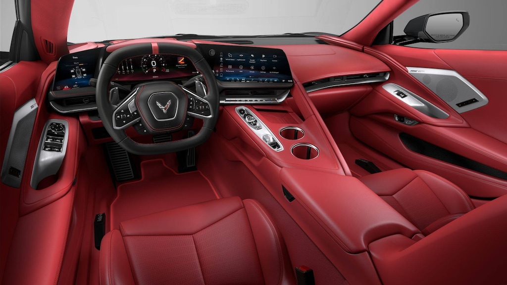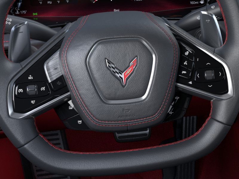 2026 Chevrolet Corvette Stingray 3LT Black RWD 8-Speed Dual Clutch 6.2L V814 Speakers, 2 Cargo Nets, 4-Wheel Disc Brakes, 8-Way Power Driver Seat Adjuster, 8-Way Power Passenger Seat Adjuster, ABS brakes, Air Conditioning, Alloy wheels, AM/FM radio: SiriusXM, Auto High-beam Headlights, Auto-dimming door mirrors, Auto-dimming Rear-View mirror, Automatic temperature control, Bose Performance Series Sound System with 14 Speakers, Brake assist, Bumpers: body-color, Compass, Convertible HardTop, Convertible roof lining, Custom Leather Wrapped Interior Package, Delay-off headlights, Driver door bin, Driver Power Bolster Seat Adjuster, Driver vanity mirror, Dual front impact airbags, Dual front side impact airbags, Electrical Theft Deterrent System, Electronic Stability Control, Emergency communication system: OnStar and Chevrolet connected services capable, Exterior Parking Camera Rear, Four wheel independent suspension, Front anti-roll bar, Front Bucket Seats, Front Center Armrest, Front dual zone A/C, Front reading lights, Fully automatic headlights, Garage door transmitter, Glass rear window, GT2 Bucket Seats, HD Front and Rear Vision Cameras, Head-Up Display, Heads-Up Display, Heated and Vented Driver and Passenger Seats, Heated door mirrors, Heated front seats, Heated Steering Wheel, Heated steering wheel, Illuminated entry, Integrated roll-over protection, Lane Departure Warning System, Leather Shift Knob, Leather steering wheel, Low tire pressure warning, Memory Driver and Passenger Convenience Package, Memory seat, Napa Leather Seating Surfaces with Perforated Inserts, Navigation System, Occupant sensing airbag, Outside temperature display, Overhead console, Panic alarm, Passenger door bin, Passenger Power Bolster Seat Adjuster, Passenger vanity mirror, Performance Data and Video Recorder, Power convertible roof, Power door mirrors, Power Driver Lumbar Control Seat Adjuster, Power driver seat, Power Passenger Lumbar Control Seat Adjuster, Power passenger seat, Power steering, Power windows, Power-Adjustable Outside Heated Mirrors, Premium audio system: Chevrolet Infotainment 3 Premium, Radio data system, Radio: Infotainment System with Google Built-in, Rear anti-roll bar, Rear Cross Traffic Alert, Rear window defroster, Remote keyless entry, Security system, Side Blind Zone Alert, Speed control, Speed-sensing steering, Sport steering wheel, Steering wheel memory, Steering wheel mounted audio controls, Sueded Microfiber-Wrapped Upper Interior Trim Package, Tachometer, Telescoping steering wheel, Tilt steering wheel, Traction control, Trip computer, Turn signal indicator mirrors, Universal Home Remote, Variably intermittent wipers, Vehicle Inclination Theft Deterrent Sensor, Vehicle Interior Movement Theft Deterrent Sensor, Ventilated front seats, Voltmeter, Wheels: 19 x 8.5 Front and 20 x 11 Rear 5-Split-Spoke, Wireless Phone Charging.