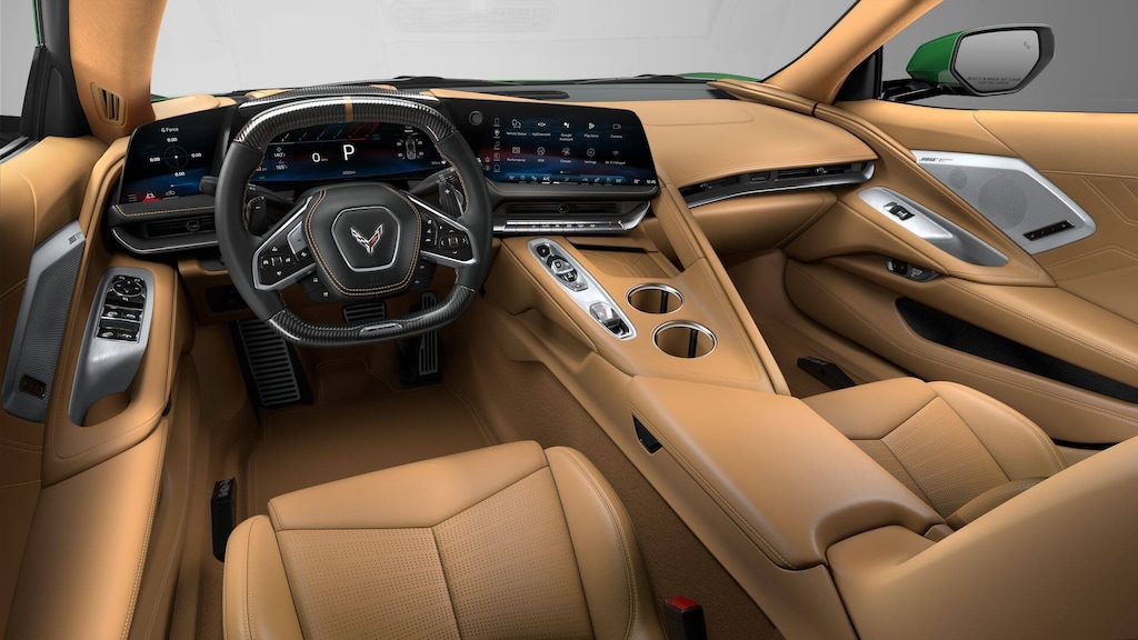 14 Speakers, 2 Cargo Nets, 20 x 10 Front and 21 x 13 Rear Tech Bronze Wheels, 4-Wheel Disc Brakes, 8-Way Power Driver Seat Adjuster, 8-Way Power Passenger Seat Adjuster, ABS brakes, Adaptive suspension, Air Conditioning, Alloy wheels, AM/FM radio: SiriusXM, Auto High-beam Headlights, Auto-dimming door mirrors, Auto-dimming Rear-View mirror, Automatic Leveling System Headlamp Control, Automatic temperature control, Bose Performance Series Sound System with 14 Speakers, Brake assist, Bumpers: body-color, Carbon Fiber Display Hood, Compass, Convertible HardTop, Convertible roof lining, Convertible Top with Carbon Flash Nacelles, Custom Leather Wrapped Interior Package, Delay-off headlights, Driver door bin, Driver Power Bolster Seat Adjuster, Driver vanity mirror, Dual front impact airbags, Dual front side impact airbags, Electrical Theft Deterrent System, Electronic Stability Control, Emergency communication system: OnStar and Chevrolet connected services capable, Exterior Parking Camera Rear, Four wheel independent suspension, Front anti-roll bar, Front Bucket Seats, Front Center Armrest, Front dual zone A/C, Front Lift Adjustable Height with Memory, Front reading lights, Fully automatic headlights, Garage door transmitter, Glass rear window, GT2 Bucket Seats, HD Front and Rear Vision Cameras, Heads-Up Display, Heated and Vented Driver and Passenger Seats, Heated door mirrors, Heated front seats, Heated Steering Wheel, Heated steering wheel, Illuminated entry, Integrated roll-over protection, Leather Shift Knob, Leather steering wheel, Low tire pressure warning, Memory Driver and Passenger Convenience Package, Memory seat, Napa Leather Seating Surfaces with Perforated Inserts, Natural Seat Belt Color, Navigation System, Occupant sensing airbag, Outside temperature display, Overhead console, Panic alarm, Passenger door bin, Passenger Power Bolster Seat Adjuster, Passenger vanity mirror, Performance Data and Video Recorder, Power convertible roof, Power door mirrors, Power Driver Lumbar Control Seat Adjuster, Power driver seat, Power Passenger Lumbar Control Seat Adjuster, Power passenger seat, Power steering, Power windows, Power-Adjustable Outside Heated Mirrors, Preferred Equipment Group 3LZ, Premium audio system: Chevrolet Infotainment 3 Premium, Radio data system, Radio: Infotainment System with Google Built-in, Rear anti-roll bar, Rear Cross Traffic Alert, Rear window defroster, Remote keyless entry, Security system, Side Blind Zone Alert, Speed control, Speed-sensing steering, Spoiler, Sport steering wheel, Steering wheel memory, Steering wheel mounted audio controls, Sueded Microfiber-Wrapped Upper Interior Trim Package, Tachometer, Telescoping steering wheel, Tilt steering wheel, Traction control, Trip computer, Turn signal indicator mirrors, Universal Home Remote, Variably intermittent wipers, Vehicle Inclination Theft Deterrent Sensor, Vehicle Interior Movement Theft Deterrent Sensor, Velocity Yellow-Painted Calipers, Ventilated front seats, Voltmeter, Wheels: 20 x 10 Front and 21 x 13 Rear Pearl Nickel, Wheels: 20 x 10 Front and 21 x 13 Rear Titanium Satin, Wireless Phone Charging.