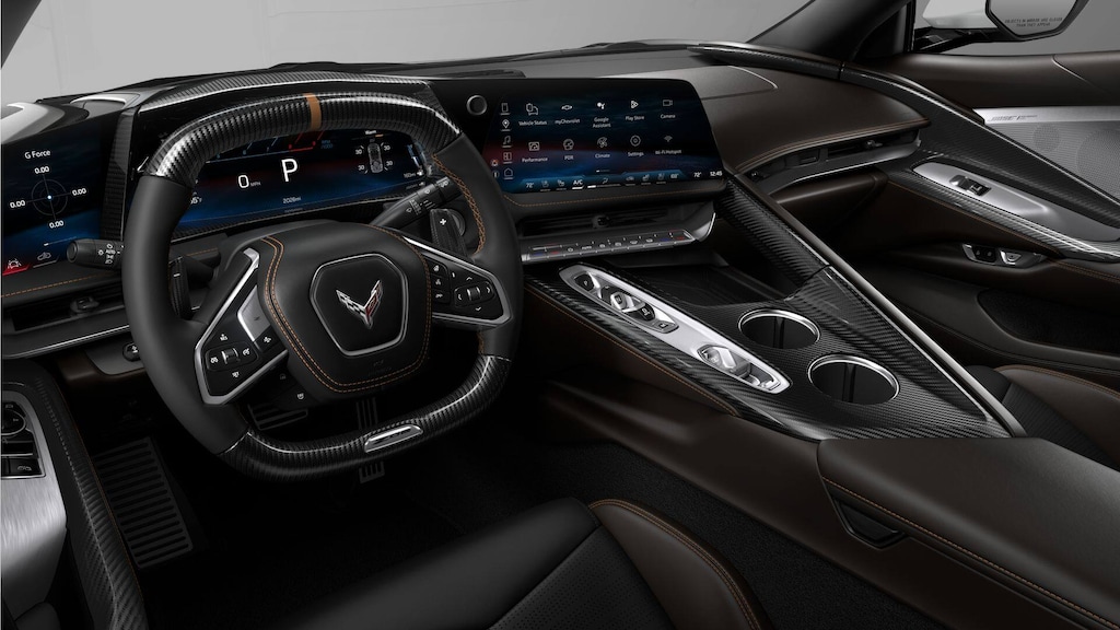 14 Speakers, 2 Cargo Nets, 4-Wheel Disc Brakes, 8-Way Power Driver Seat Adjuster, 8-Way Power Passenger Seat Adjuster, ABS brakes, Adaptive suspension, Air Conditioning, Alloy wheels, AM/FM radio: SiriusXM, Auto High-beam Headlights, Auto-dimming door mirrors, Auto-dimming Rear-View mirror, Automatic Leveling System Headlamp Control, Automatic temperature control, Bose Performance Series Sound System with 14 Speakers, Brake assist, Bumpers: body-color, Carbon Fiber Display Hood, Carbon Fiber Level 2 Interior Trim, Compass, Custom Leather Wrapped Interior Package, Delay-off headlights, Driver door bin, Driver Power Bolster Seat Adjuster, Driver vanity mirror, Dual front impact airbags, Dual front side impact airbags, Edge Red-Painted Calipers, Electrical Theft Deterrent System, Electronic Stability Control, Emergency communication system: OnStar and Chevrolet connected services capable, Engine Lighting, Exterior Parking Camera Rear, Four wheel independent suspension, Front anti-roll bar, Front Bucket Seats, Front Center Armrest, Front dual zone A/C, Front Lift Adjustable Height with Memory, Front reading lights, Fully automatic headlights, Garage door transmitter, GT2 Bucket Seats, HD Front and Rear Vision Cameras, Heads-Up Display, Heated and Vented Driver and Passenger Seats, Heated door mirrors, Heated front seats, Heated Steering Wheel, Heated steering wheel, Illuminated entry, Leather Shift Knob, Leather steering wheel, Low tire pressure warning, Memory Driver and Passenger Convenience Package, Memory seat, Napa Leather Seating Surfaces with Perforated Inserts, Navigation System, Occupant sensing airbag, Outside temperature display, Overhead console, Panic alarm, Passenger door bin, Passenger Power Bolster Seat Adjuster, Passenger vanity mirror, Performance Data and Video Recorder, Power door mirrors, Power Driver Lumbar Control Seat Adjuster, Power driver seat, Power Passenger Lumbar Control Seat Adjuster, Power passenger seat, Power steering, Power windows, Power-Adjustable Outside Heated Mirrors, Preferred Equipment Group 3LZ, Premium audio system: Chevrolet Infotainment 3 Premium, Radio data system, Radio: Infotainment System with Google Built-in, Rear anti-roll bar, Rear Cross Traffic Alert, Rear window defroster, Red Engine Intake, Remote keyless entry, Security system, Side Blind Zone Alert, Speed control, Speed-sensing steering, Spoiler, Sport steering wheel, Steering wheel memory, Steering wheel mounted audio controls, Sueded Microfiber-Wrapped Upper Interior Trim Package, Tachometer, Telescoping steering wheel, Tilt steering wheel, Traction control, Trip computer, Turn signal indicator mirrors, Universal Home Remote, Variably intermittent wipers, Vehicle Inclination Theft Deterrent Sensor, Vehicle Interior Movement Theft Deterrent Sensor, Ventilated front seats, Voltmeter, Wheels: 20 x 10 Front and 21 x 13 Rear Titanium Satin, Wireless Phone Charging.