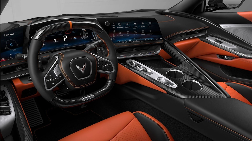 2026 Chevrolet Corvette ZR1 Black RWD 8-Speed Dual Clutch 5.5L V814 Speakers, 2 Cargo Nets, 4-Wheel Disc Brakes, 8-Way Power Driver Seat Adjuster, 8-Way Power Passenger Seat Adjuster, ABS brakes, Adaptive suspension, Air Conditioning, Alloy wheels, AM/FM radio: SiriusXM, Auto High-beam Headlights, Auto-dimming door mirrors, Auto-dimming Rear-View mirror, Automatic temperature control, Bose Performance Series Sound System with 14 Speakers, Brake assist, Bumpers: body-color, Ceramic disc brakes: front and rear, Compass, Convertible HardTop, Convertible roof lining, Custom Leather Wrapped Interior Package, Delay-off headlights, Driver door bin, Driver Power Bolster Seat Adjuster, Driver vanity mirror, Dual front impact airbags, Dual front side impact airbags, Electrical Theft Deterrent System, Electronic Stability Control, Emergency communication system: OnStar and Chevrolet connected services capable, Exterior Parking Camera Rear, Four wheel independent suspension, Front anti-roll bar, Front Bucket Seats, Front Center Armrest, Front dual zone A/C, Front reading lights, Fully automatic headlights, Garage door transmitter, Glass rear window, GT2 Bucket Seats, HD Front and Rear Vision Cameras, Heads-Up Display, Heated and Vented Driver and Passenger Seats, Heated door mirrors, Heated front seats, Heated Steering Wheel, Heated steering wheel, Illuminated entry, Integrated roll-over protection, Leather Shift Knob, Leather steering wheel, Low tire pressure warning, Memory Driver and Passenger Convenience Package, Memory seat, Napa Leather Seating Surfaces with Perforated Inserts, Navigation System, Occupant sensing airbag, Outside temperature display, Overhead console, Panic alarm, Passenger door bin, Passenger Power Bolster Seat Adjuster, Passenger vanity mirror, Power convertible roof, Power door mirrors, Power Driver Lumbar Control Seat Adjuster, Power driver seat, Power Passenger Lumbar Control Seat Adjuster, Power passenger seat, Power steering, Power windows, Power-Adjustable Outside Heated Mirrors, Premium audio system: Chevrolet Infotainment 3 Premium, Radio data system, Radio: Infotainment System with Google Built-in, Rear anti-roll bar, Rear Cross Traffic Alert, Rear window defroster, Remote keyless entry, Security system, Side Blind Zone Alert, Speed control, Speed-sensing steering, Spoiler, Sport steering wheel, Steering wheel memory, Steering wheel mounted audio controls, Sueded Microfiber-Wrapped Upper Interior Trim Package, Tachometer, Telescoping steering wheel, Tilt steering wheel, Traction control, Trip computer, Turn signal indicator mirrors, Universal Home Remote, Variably intermittent wipers, Vehicle Inclination Theft Deterrent Sensor, Vehicle Interior Movement Theft Deterrent Sensor, Ventilated front seats, Voltmeter, Wheels: 20 x 10 Front and 21 x 13 Rear Sterling Silver, Wireless Phone Charging.