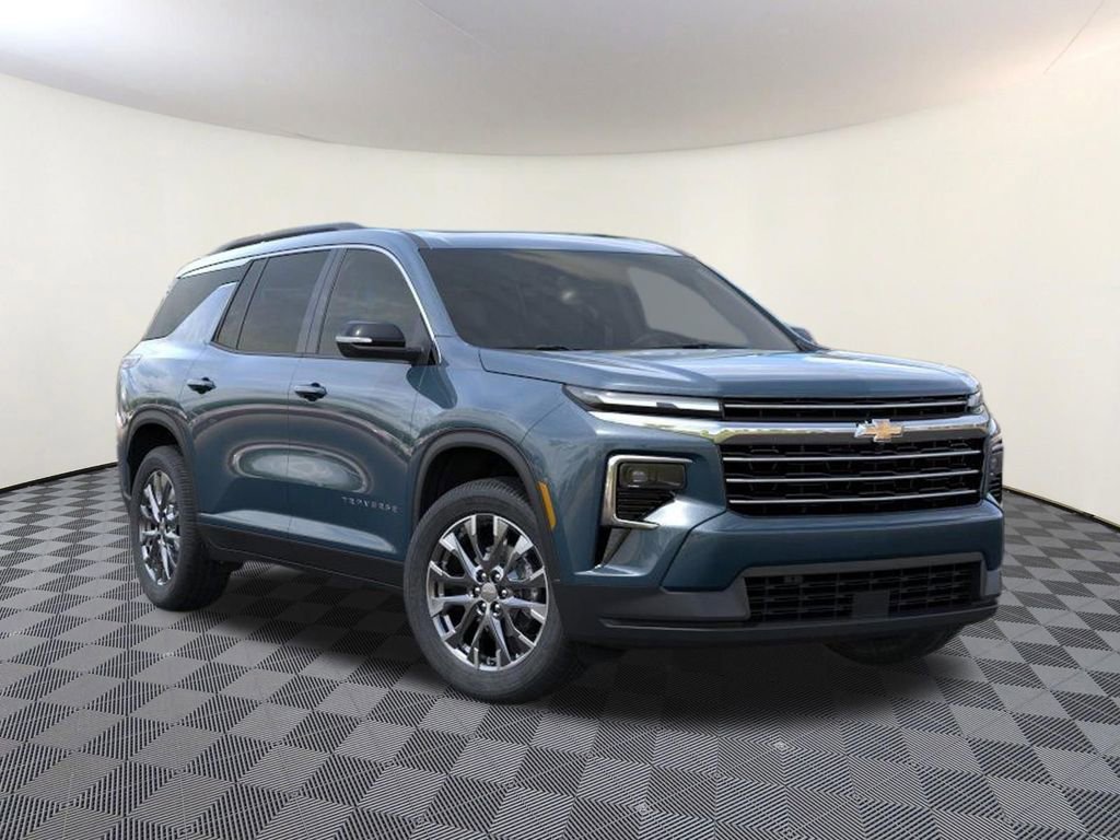 Lakeshore Blue 2026 Chevrolet Traverse LT AWD 8-Speed Automatic 2.5L DOHC AWD, 3rd row seats: split-bench, 4-Way Manual Front Passenger Seat Adjuster, 4-Wheel Disc Brakes, 6 Speakers, 6-Speaker Audio System Feature, 8-Way Power Driver Seat Adjuster, ABS brakes, Air Conditioning, Alloy wheels, AM/FM radio: SiriusXM with 360L, Apple CarPlay/Android Auto, Auto High-beam Headlights, Automatic temperature control, Brake assist, Bumpers: body-color, Child-Seat-Sensing Airbag, Compass, Delay-off headlights, Driver door bin, Driver vanity mirror, Dual front impact airbags, Dual front side impact airbags, Electronic Stability Control, Emergency communication system: OnStar, Four wheel independent suspension, Front anti-roll bar, Front Bucket Seats, Front Center Armrest, Front dual zone A/C, Front reading lights, Fully automatic headlights, Heated door mirrors, Heated Driver and Front Passenger Seats, Heated front seats, Heated steering wheel, Illuminated entry, Low tire pressure warning, Navigation System, Occupant sensing airbag, Outside temperature display, Overhead airbag, Overhead console, Panic alarm, Passenger door bin, Passenger vanity mirror, Power door mirrors, Power driver seat, Power Liftgate, Power steering, Power windows, Premium Cloth Seat Trim, Radio data system, Radio: : Audio System w/17.7 Diagonal Display, Rear air conditioning, Rear anti-roll bar, Rear reading lights, Rear window defroster, Rear window wiper, Remote keyless entry, Security system, SiriusXM with 360L Trial Subscription, Speed control, Speed-sensing steering, Spoiler, Steering wheel mounted audio controls, Tachometer, Telescoping steering wheel, Tilt steering wheel, Traction control, Trip computer, Turn signal indicator mirrors, Variably intermittent wipers, Voltmeter, Wheels: 18 Grazen Metallic Machined-Face Aluminum, AWD.Recent Arrival!
